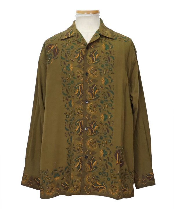 ニット×シャンブレー カーディガン(カラスとネコ刺繍)・リバティーヒッコリー ファティーグバギーパンツ(ラッシュフィールドリメイク)・シルクレーヨン シャンベトルマリア柄 ラングルカラーアロハシャツUPしました。