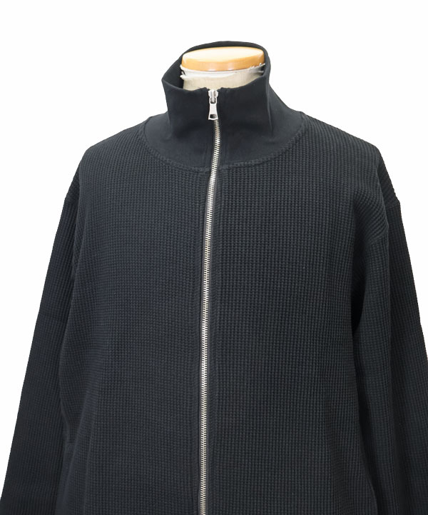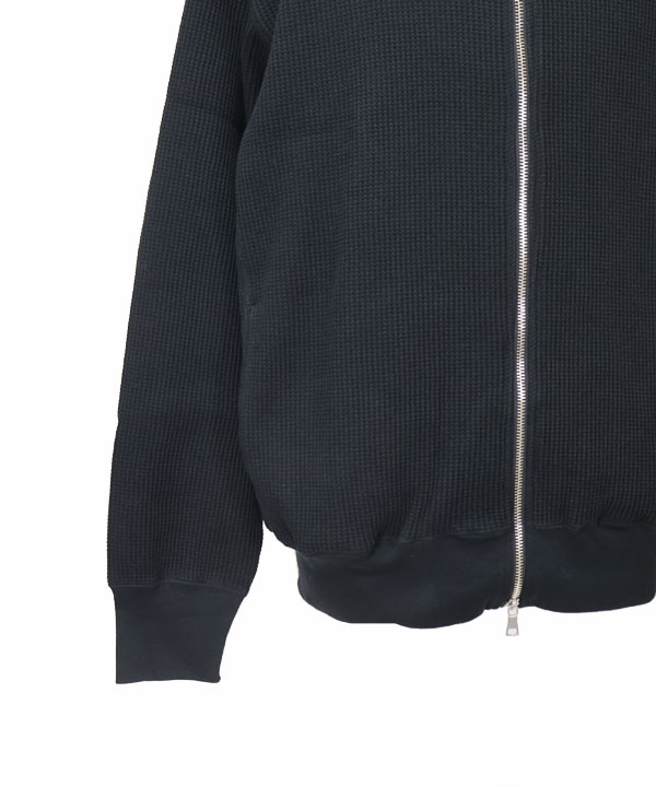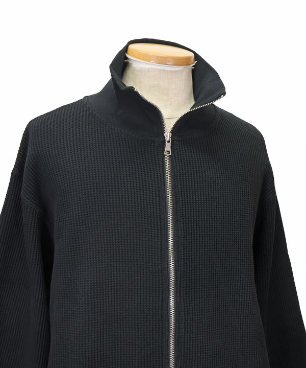 古い編み立て機を使用して編み上げた、肉厚のローゲージワッフル地を使ったフルジップ仕様のカーディガン。