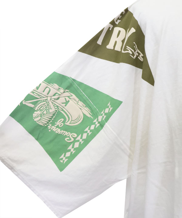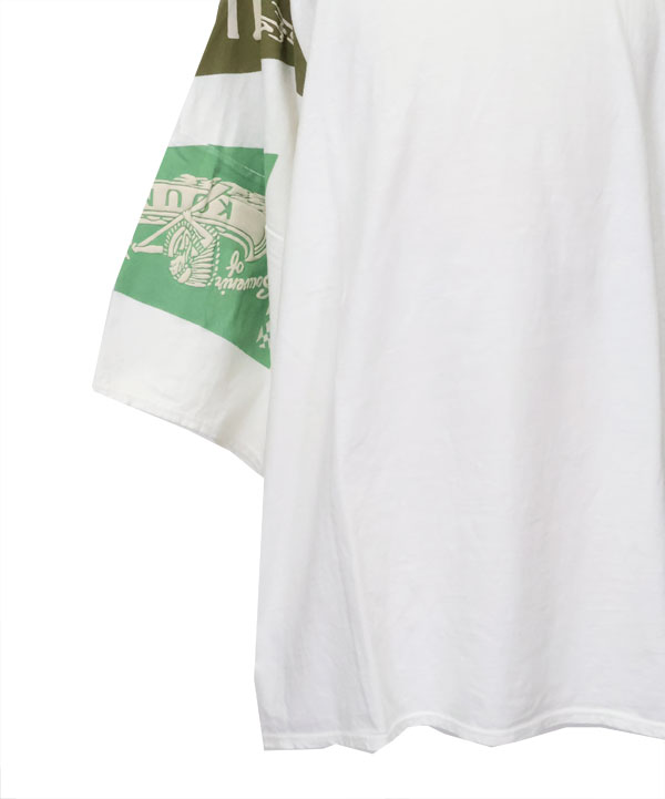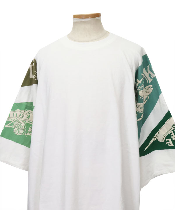 天竺 HUGE-T(ペナントYUKON)オーバーサイズのTシャツです。ゆったりとリラックス感漂うBIGシルエットのTシャツは、両肩にペナントを施したデザイン。そして発砲プリントとなっています。ボトムスを選ばずコーディネートが楽しめる一枚に仕上がっています。カラー:グリーン1サイズ&3サイズのツーサイズ展開アイテム