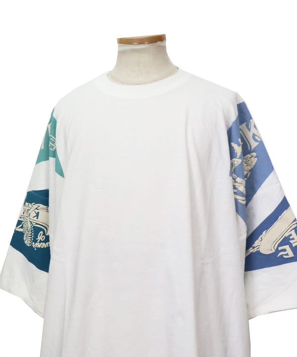 天竺 HUGE-T(ペナントYUKON)オーバーサイズのTシャツです。ゆったりとリラックス感漂うBIGシルエットのTシャツは、両肩にペナントを施したデザイン。そして発砲プリントとなっています。ボトムスを選ばずコーディネートが楽しめる一枚に仕上がっています。カラー:ブルー1サイズ&3サイズのツーサイズ展開アイテム