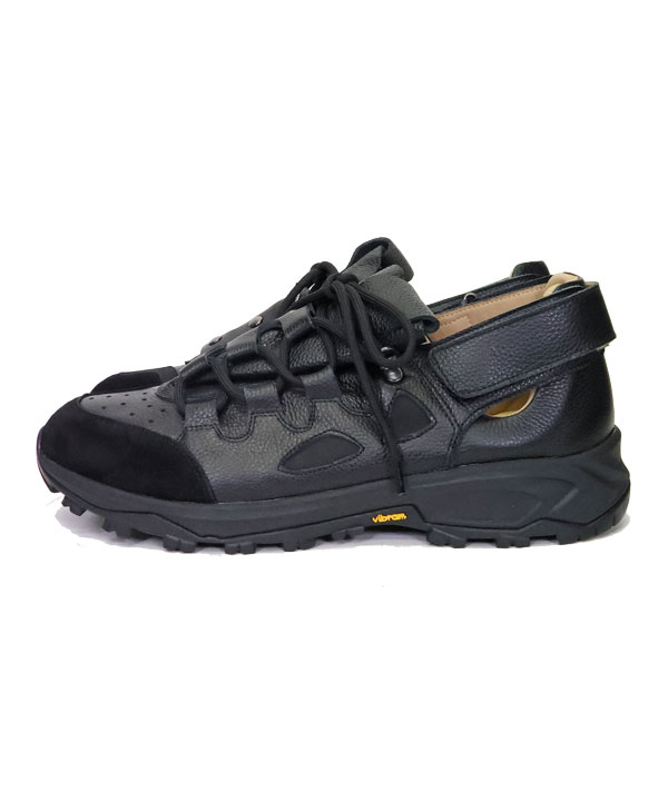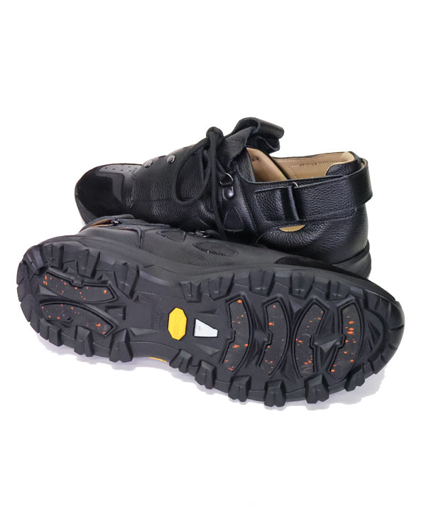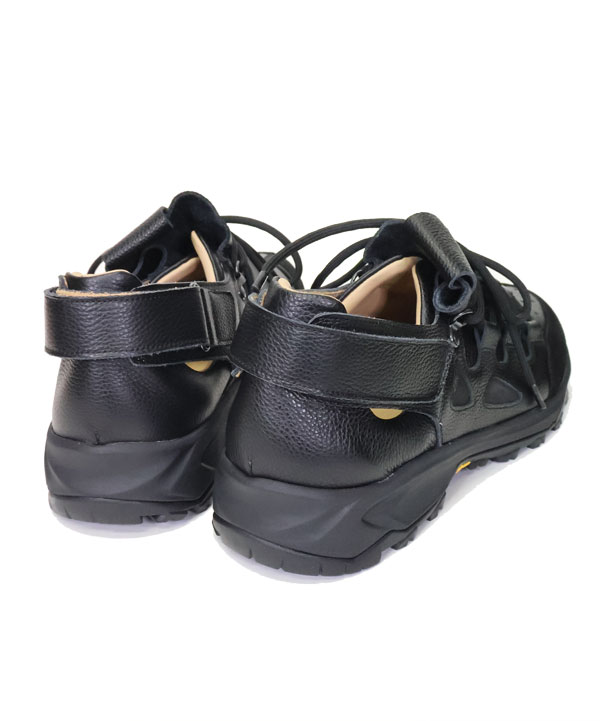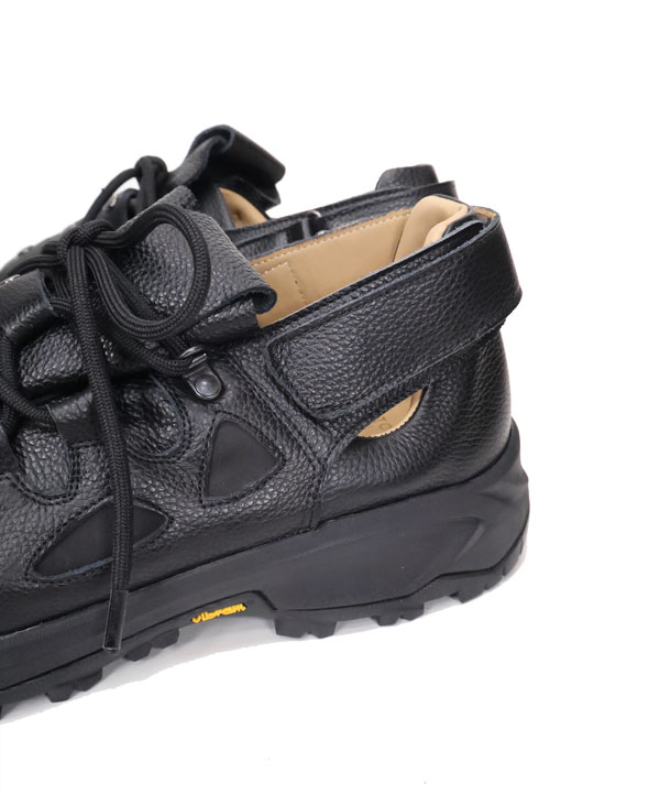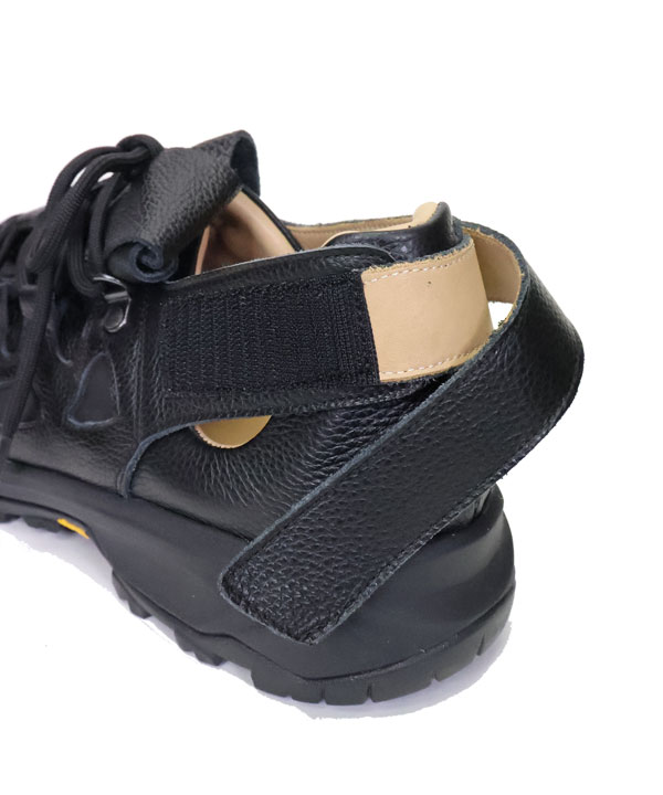 またトレッキングシューズの要素を取り入れ、アンシンメトリックにアレンジした袋状ベロやシューレース、踵部分に施したベロクロのストラップは、外見的な90年代のスニーカーの要素をとり入れただけでなく、フィッティングを考慮した構造になっています。