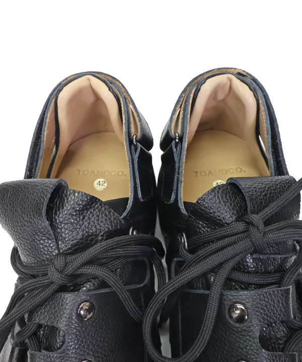 TO&COが学んできたパターンカッティングをはじめ様々なテクニックを活用しながら、自身が積み重ねてきた靴づくりの概念というクラシカルな固定概念を無視した、モダンかつ唯一無二のプロダクトを意識したデザインです。