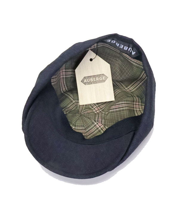 GASTONAUBERGE定番キャスケットのGASTON。あまり横に張りすぎないのですっきりしたサイズで着用いただけます。今回はウールスーパー140'sとヘンプで織り上げたカバートクロスを使用しております。ぜひお試しください。カラー:ネイビー