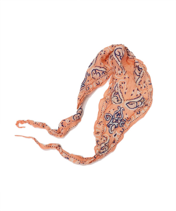 ワッシャーシルク ネッカチーフ(Samboペイズリー)ペイズリー柄のネッカチーフ。シルクをシワ加工しています。菱形になっており、細く丸めやすいため、ボリューム感を抑えてすっきりと首元を彩ることができます。首元のワンポイントにお使いください。ワンサイズ展開長さ:110㎝