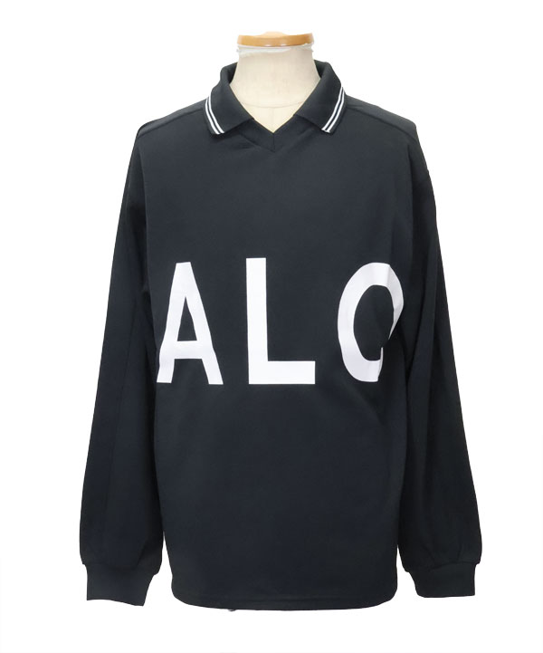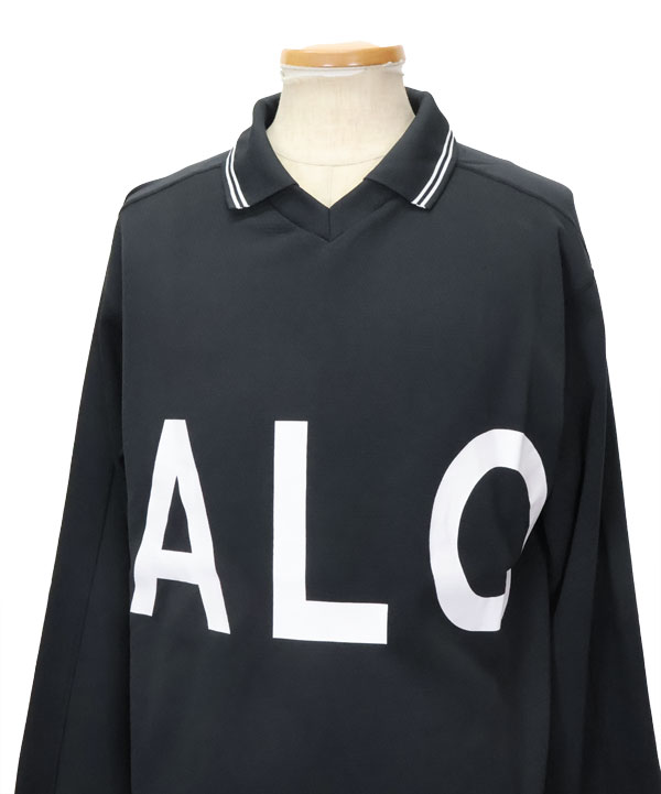 フロントからバックに大きく入った ALOHAプリントはインパクトがあり人気のデザイン。そして襟にジャガードで入れられた2本ラインもアクセントになっています。