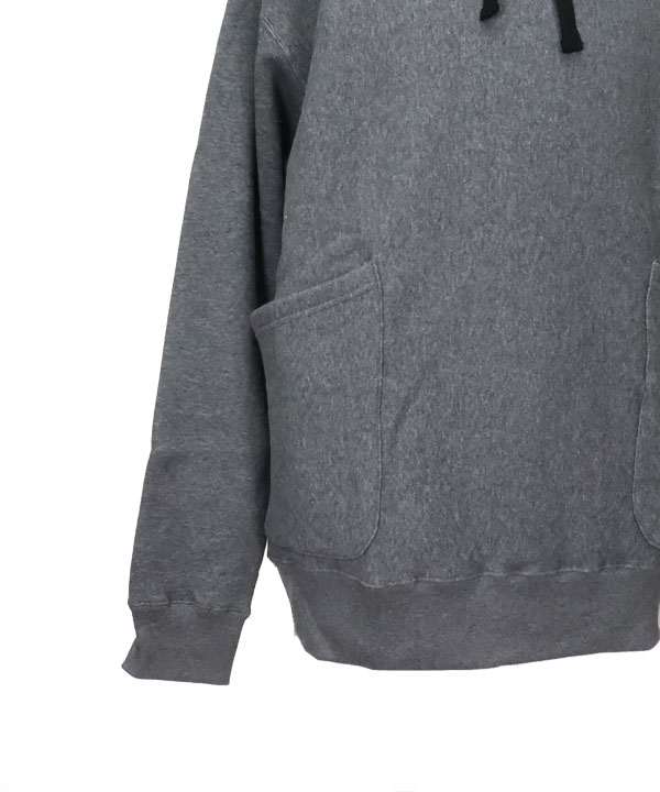 カーゴポケットフーディ(Root)裏ループにコーティングを施し、裏起毛加工に更に膨らみを持たせた裏毛を使用したパーカー。身頃はリバースウィーブにて身生地を横に使用し着丈の縮みを抑える仕様となっています。また、脇ハギを跨ぐ形で叩いた 腰のパッチポケットが独特のカーゴポケットフーディー。ご活躍いただけますよ。カラー:メランジチャコール