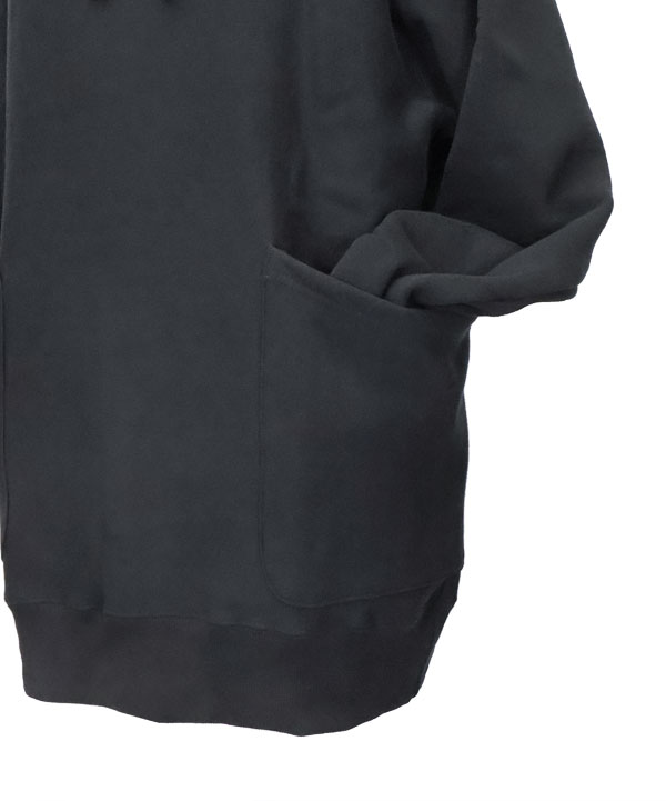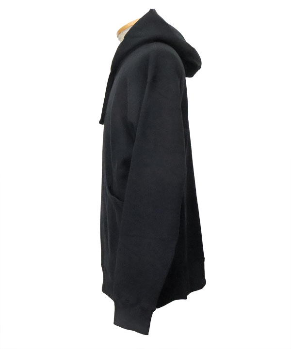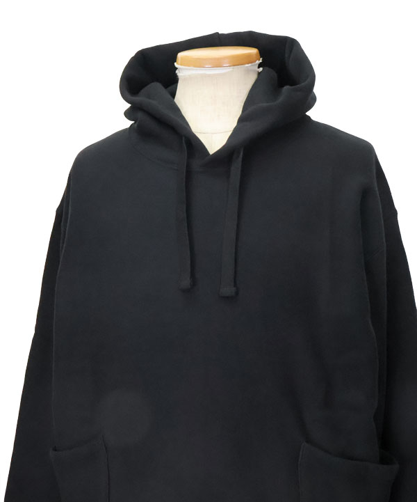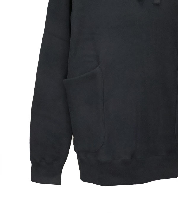 カーゴポケットフーディ(Root)裏ループにコーティングを施し、裏起毛加工に更に膨らみを持たせた裏毛を使用したパーカー。身頃はリバースウィーブにて身生地を横に使用し着丈の縮みを抑える仕様となっています。また、脇ハギを跨ぐ形で叩いた 腰のパッチポケットが独特のカーゴポケットフーディー。ふっくら柔らかでご活躍いただけますよ。カラー:ブラック