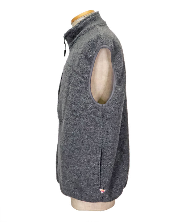 フロントに並列して配置した2本のZIPが特徴的なスタンドネックベストです。