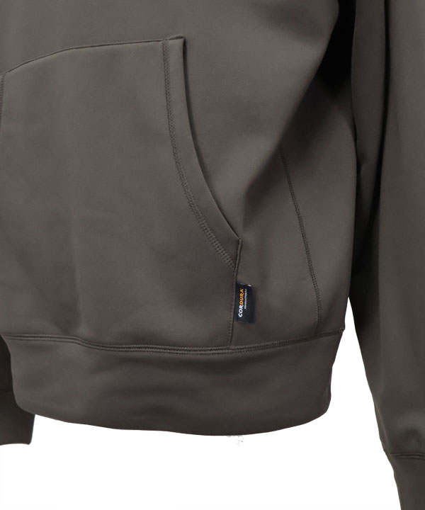 保温性に優れ独特のもっちりした肌触り、ストレッチ性に長けたCORDURA®裏起毛フリースを使ったプルオーバーフーディ。