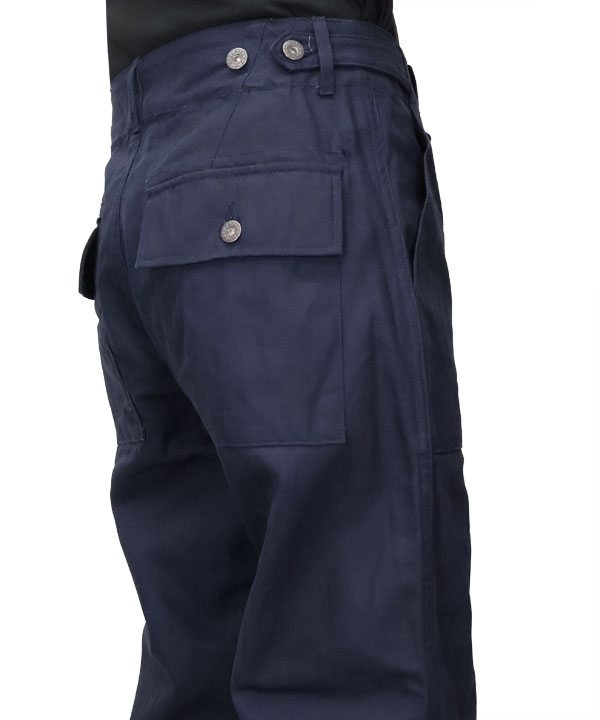 素材はオーガニックコットンの強撚糸で織り上げたUS ARMYのそれをリプロした超高密度のヘリンボーンツイル。ボタンは月桂樹ネオバボタンを使用。