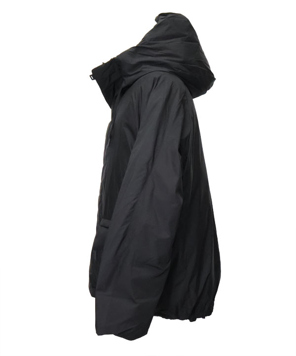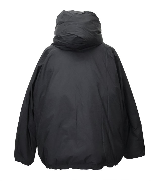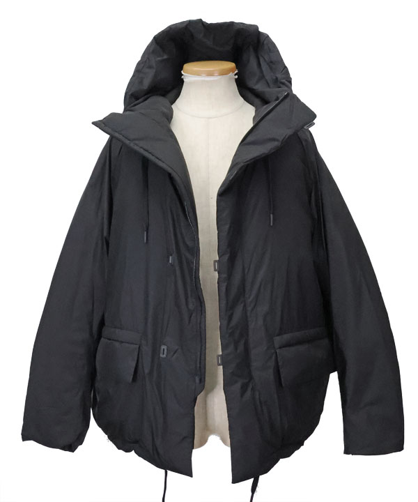 カタチは、広めの身幅と短めの着丈でシルエットに特徴を持たせたフードダウン。