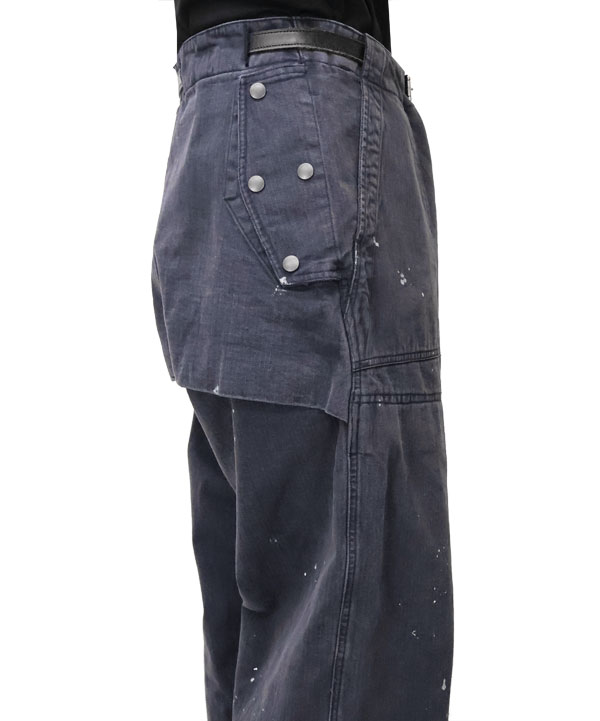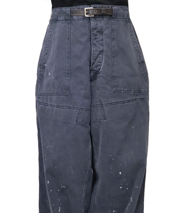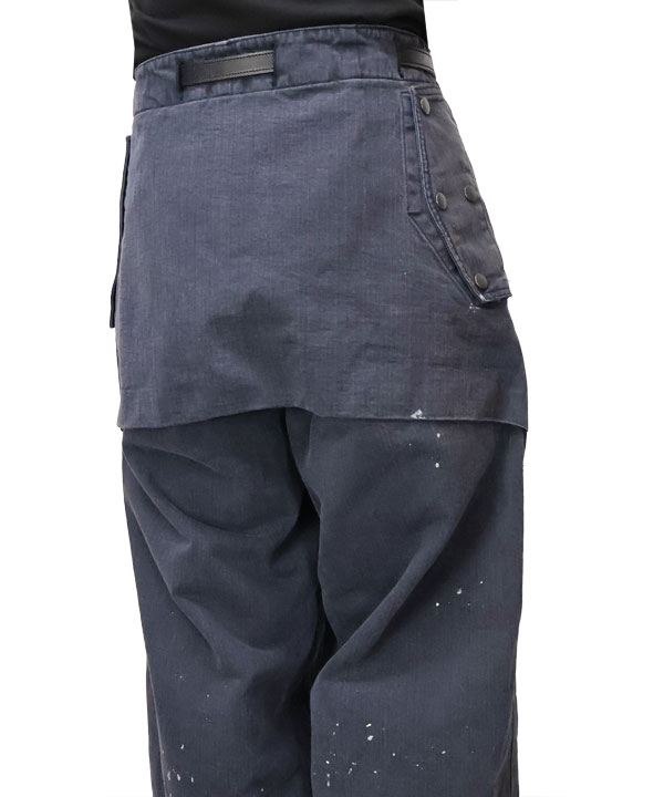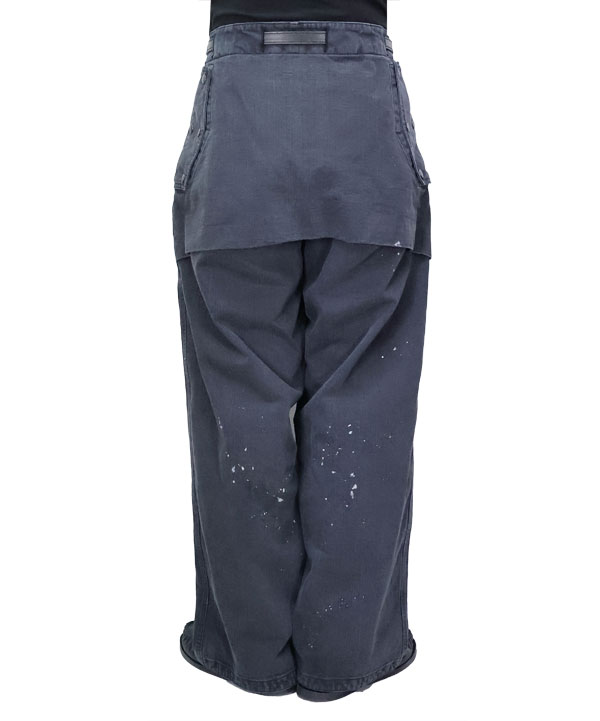 ミリタリー史上最も難解な構造を持つと言われているこのリバーシブルパンツ、袋布をかねたヒップ周りの造形が極めてモードな雰囲気を醸します。そして、10年着用加工、ペンキ、グリス汚れ加工を施しています。