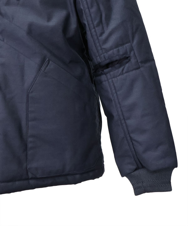 200gの厚い中綿を入れ、オリジナルにはないフロントファスナー、胸ポケットを付け、全てパラシュート釦とし、防寒性の高い街着として再構築したスペシャルな一着です。