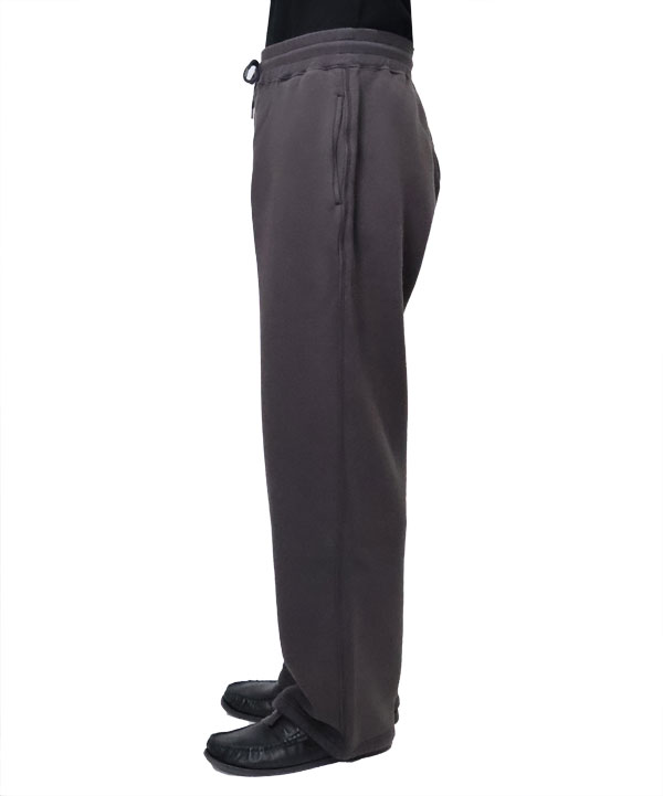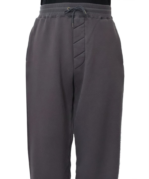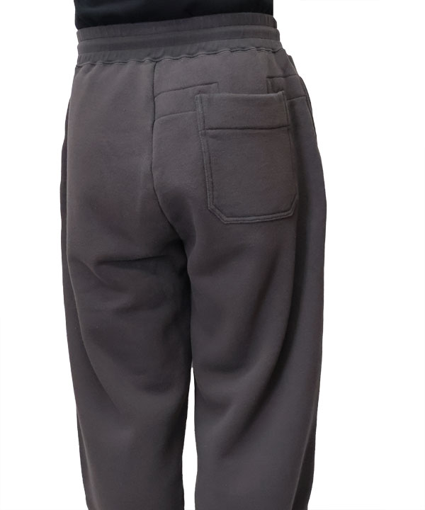 吊裏毛機を使用し表糸をスビンコットン100%、裏パイル糸をシルク100%を使用した裏起毛スエットパンツ。