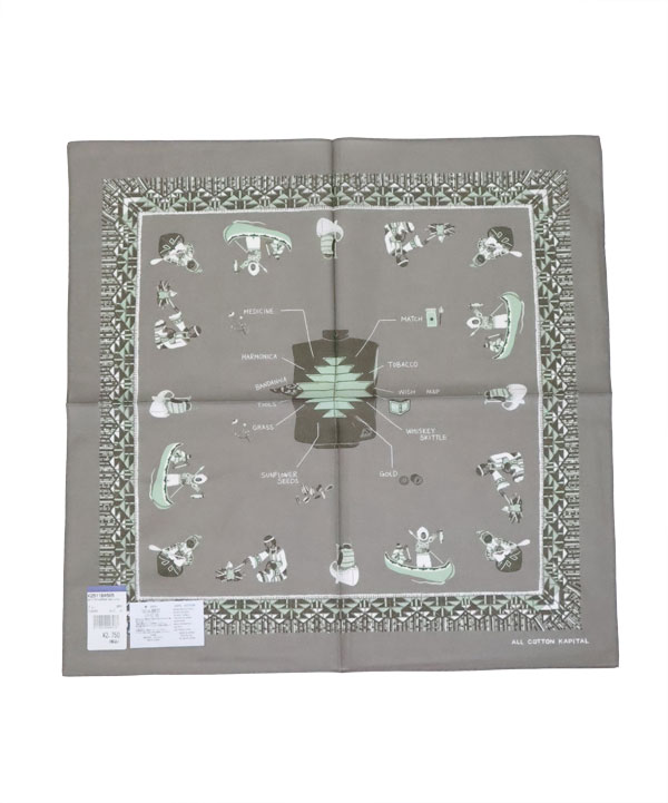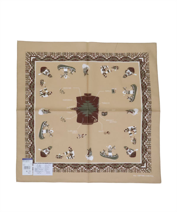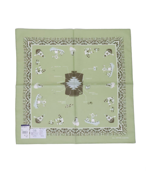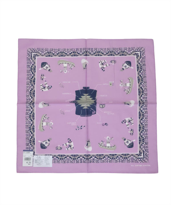 カラーバンダナ(ZEPHER Vest Life)中央にZEPHER ベスト、そしてまわりに人々の生活がデザインされています。タテ51㎝×ヨコ52センチ