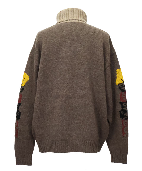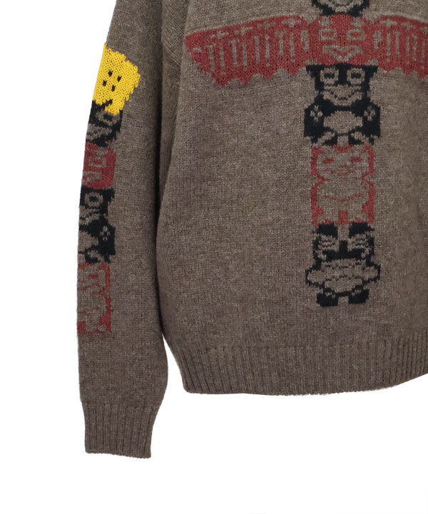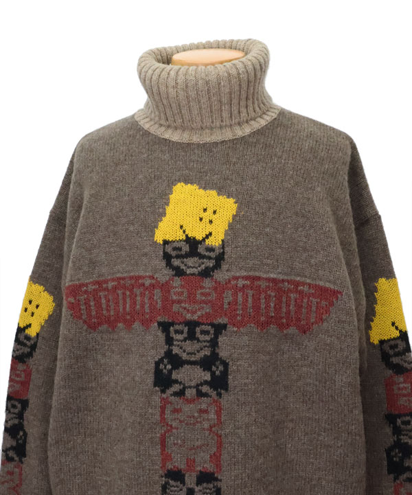 5Gウール PECKISHトーテムポール ハイネックセーターゆったりしたサイズ感のタートルセーターです。フロントと袖には、クッキーになったRAINBOWYとトーテムポールをデザイン。ざっくり着ていただけるおすすめの一枚です。カラー:ブラウン3サイズ展開のみアイテム