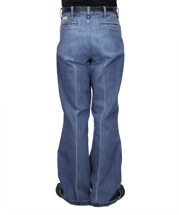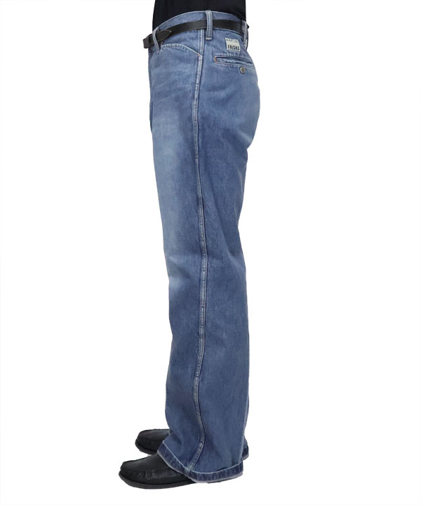 14ozデニム 5P フリスコ(センタープリーツ加工)14オンスデニム生地を使用するLポケ5ポケットのフリスコデニム。フレアシルエットで加工も施され、センタープリーツ加工のラインが入ります。カラー:インディゴ加工