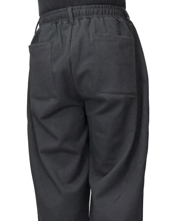 ストレッチ イージーパンツポリエステル×レーヨン×ポリウレタンの快適イージーパンツです。ジャガードにて細かな柄と、程よい肉感そして伸縮性ある生地は超楽チンの一本。ぜひお試しください。カラー:ブラック