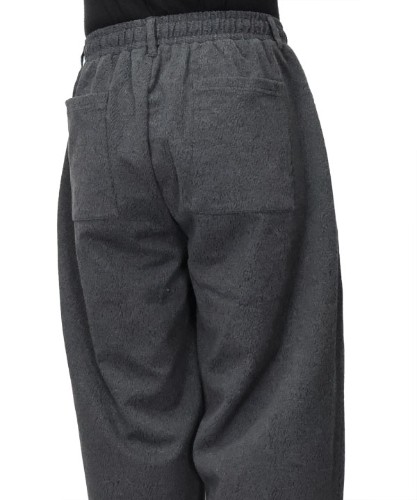 ストレッチ イージーパンツポリエステル×レーヨン×ポリウレタンの快適イージーパンツです。ジャガードにて細かな柄と、程よい肉感そして伸縮性ある生地は超楽チンの一本。ぜひお試しください。カラー:チャコールグレー