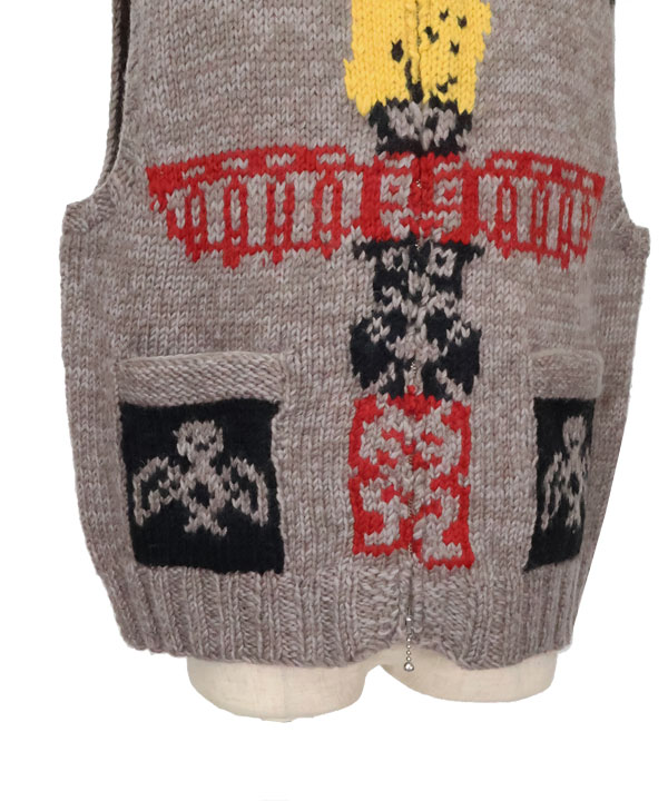 ハンドニット PECKISHトーテムポール ZIPベストハンドニット特有の素朴さ、温かさを感じられるベストです。フロントと背中には、クッキーになったRAINBOWYとトーテムポールをデザイン。ざっくり着ていただけるおすすめの一枚です。カラー:ブラウンベージュ1サイズ・3サイズ展開のアイテム
