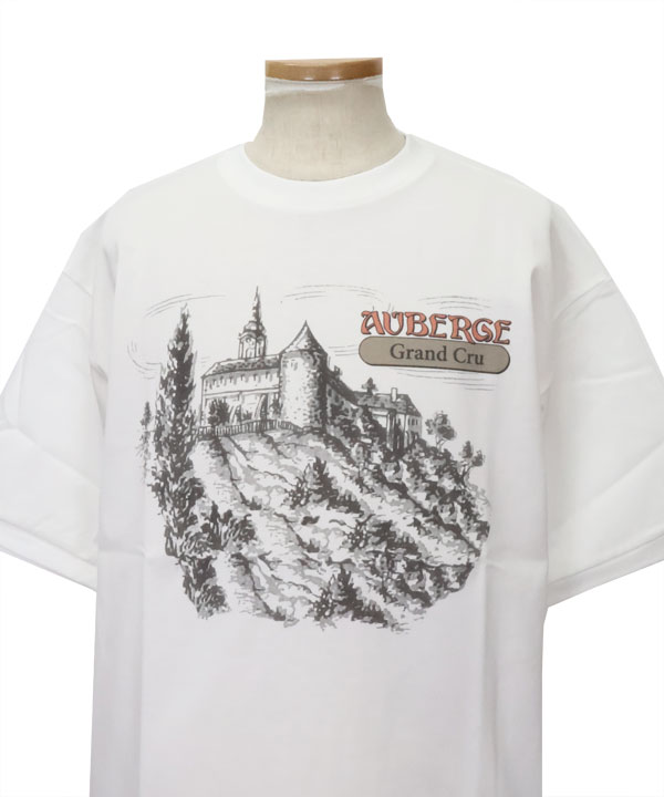 CRU (クリュ)ギザコットンの超度詰天竺を使用する、極めて美しい白度を持った超長綿天竺TEEです。胸元にフランスの田舎の葡萄棚をイメージしたイラストのAUBERGEロゴ入り。GRANDO CRUクリュとは最高の畑の意味です。着心地の良い素材をお楽しみください。カラー:ホワイト