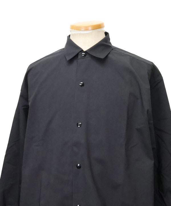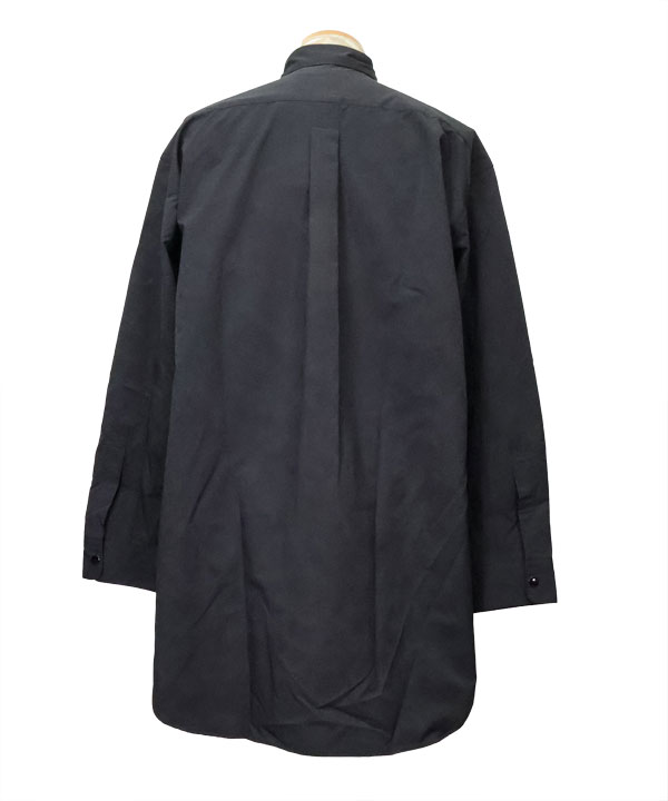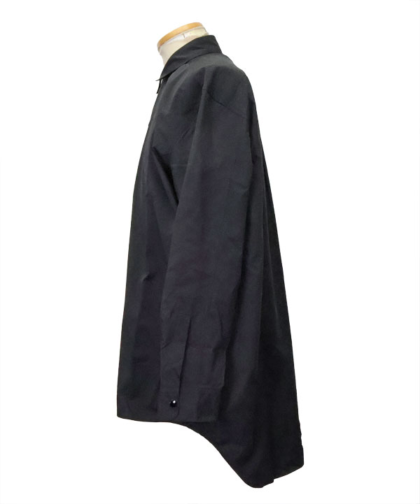 カタチは、前丈をやや短く、後丈を長めに設定した前後差のある着丈が特徴。後身頃には広がりを持たせることで、動きのある立体的なシルエットを生み出しています。