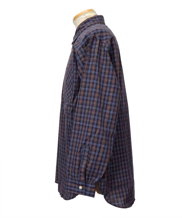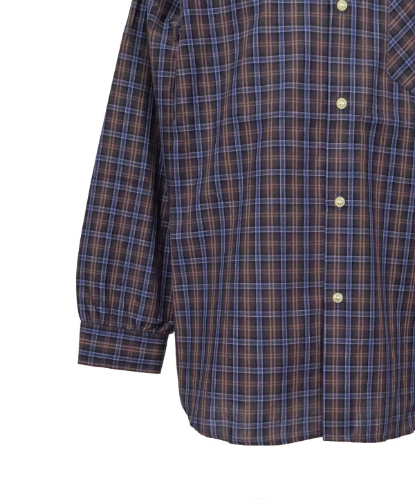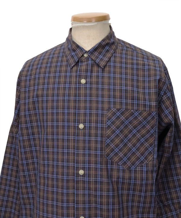 チェックシャツコットン100%の先染めチェックシャツ。裾脇のカッティングが特徴的で、レイヤードスタイルにも重宝いただけます。そして胸ポケット・ヨーク部分はバイアスに付属します。カラー:ブラウン×ブルー