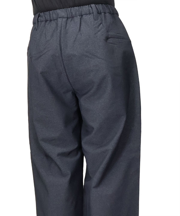 ウエストはゴム&紐(内側に付属)のイージー仕様となっていて、ゆったりとリラックス感ある太さのテーパードシルエット。