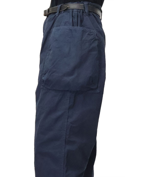 カタチはハイライズのヒップ・ワタリには程よいボリュームを持たせたテーパードシルエット。そして両サイドにはミリタリータイプのマチがある大きなパッチポケットが付属します。