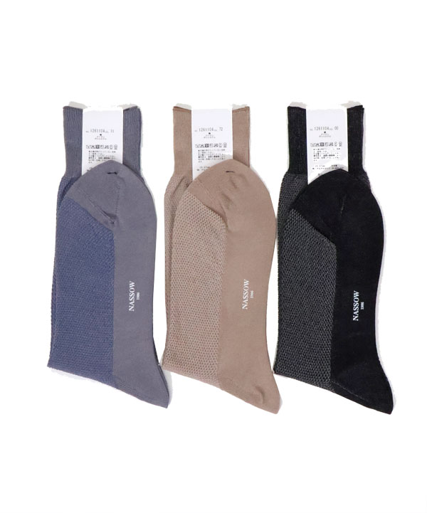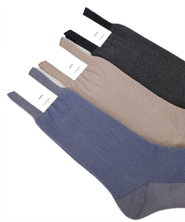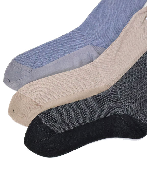 TWO-TONE MOSS STITCHソックス細番手のガスシルケットコットンを使用したドレスソックス。シャリ感も強く大人っぽく履いていただけます。つま先縫製部はリンキング仕上げの本格ソックスです。MADE IN JAPAN素材:綿×ナイロン×ポリエステル