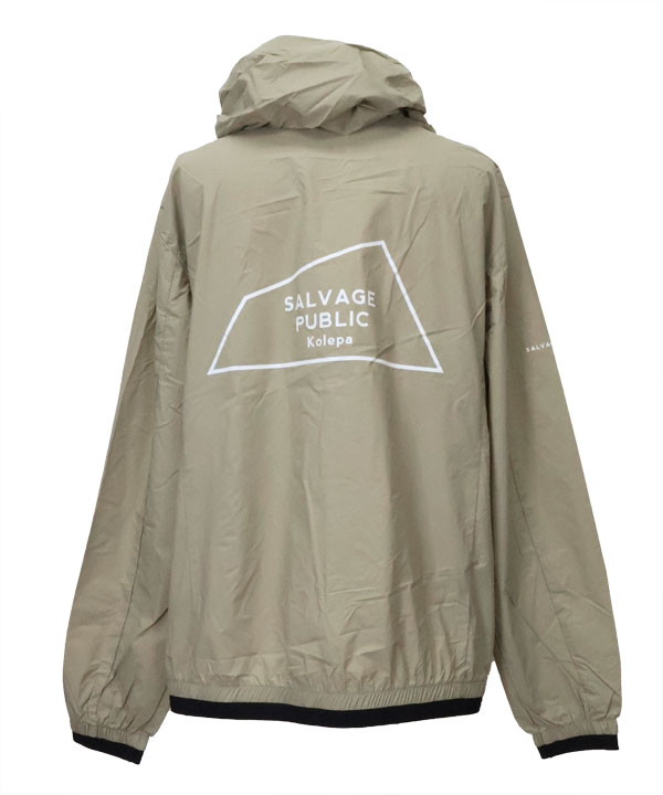 左胸ZIPテープにNALU&TURFのプリントが入り、右袖にSALVAGE PUBLIC Kolepaスタンプロゴのプリント入り。