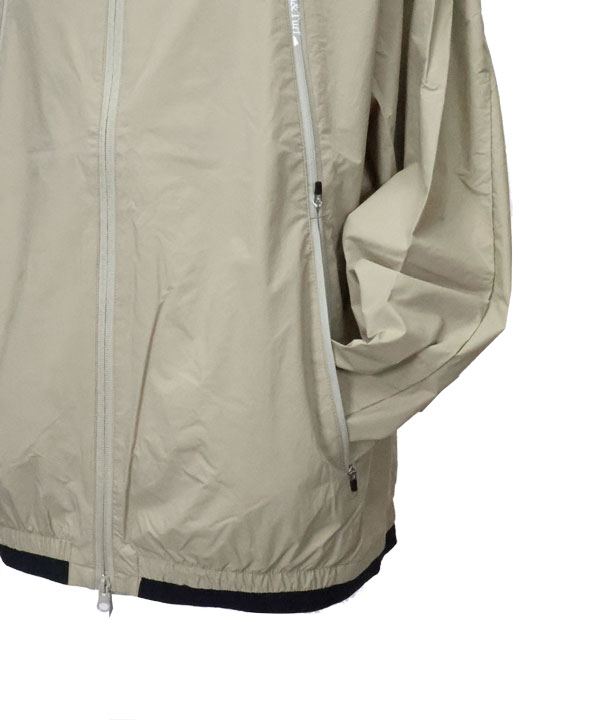 フロント左右に長く配したZIPポケットは一見すると大きな1つのポケットに見えますが、センターで上下にセパレートしており、ハンドウォームポケットなど様々なシーンで使い勝手の良い仕様となっています。