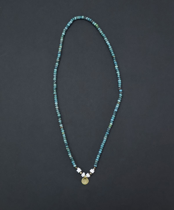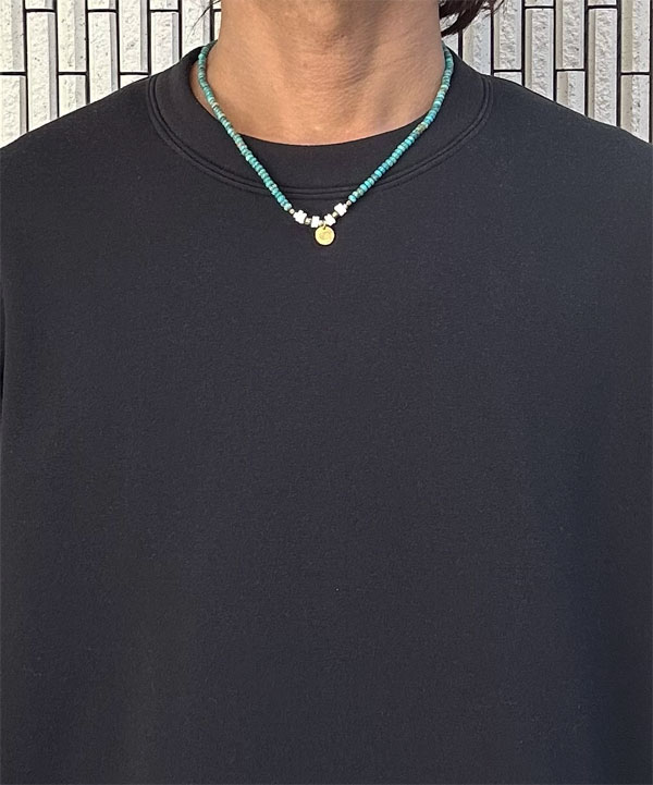 ビーズ ネックレス&アンクレット二重巻きでアンクレットとして、そして一重でネックレスとしても使える、自由度の高いデザインです。天然ターコイズが施された伸縮性あるゴム仕様の脱着が楽チンなアイテムです。melple刻印入りパーツも付属します。スタイリングに程よい個性を添えてくれるアクセサリーです。ワンサイズ展開カラー:ターコイズ素材:天然石・シルバー925・真鍮