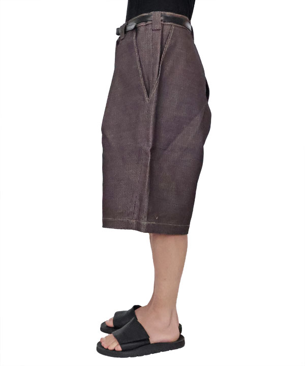 柿渋染めを施したNO.5の独特の深みのある刺し子デニムショートパンツ。