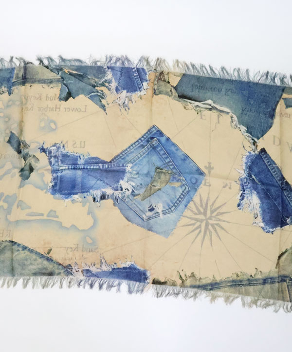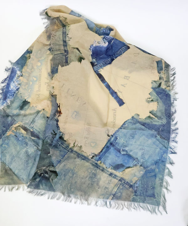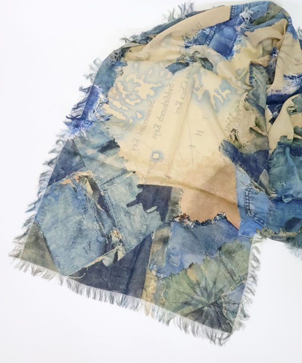 レーヨン フリンジストール(KAYO HUESO デニムマップ)柔らかく肌触りの良いレーヨン素材を使用したストールです。端はフリンジ始末になっていてドレープ感のある雰囲気をお楽しみいただけます。長さ170㎝×幅50㎝ワンサイズ展開カラー:ブルー