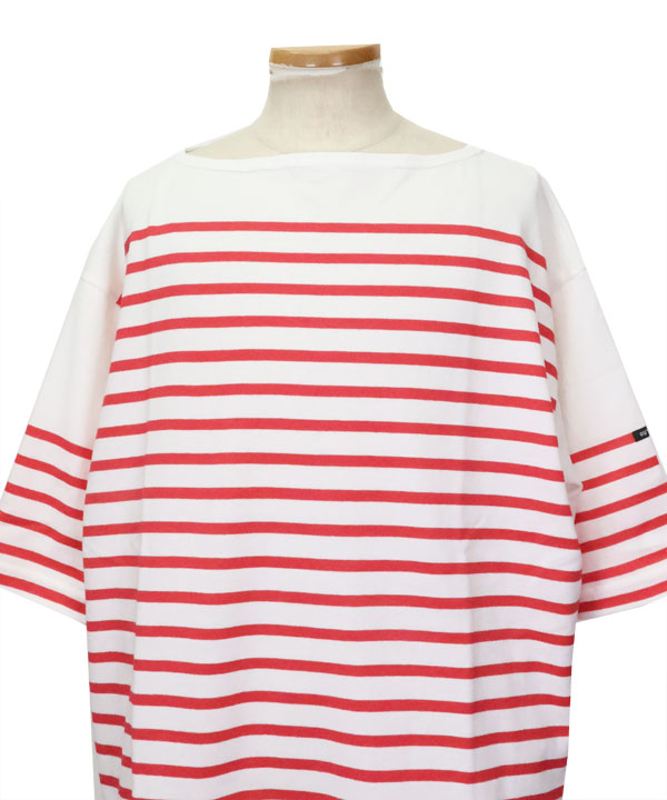 首回りは広めなボートネックデザインのため、タンクトップやクルーネックTEEとのレイヤードもおすすめ。