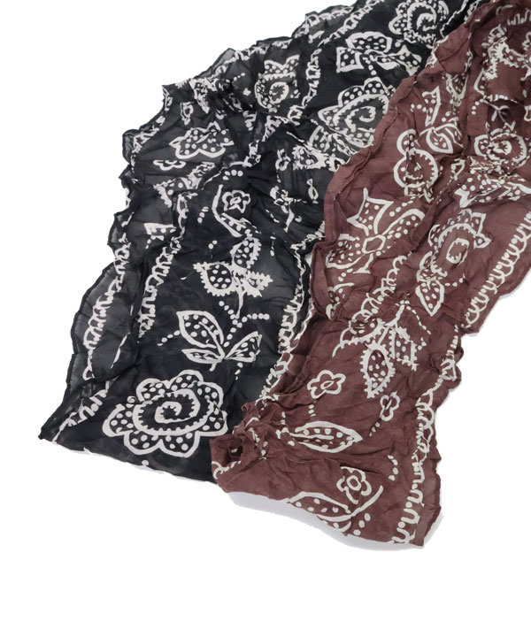 ワッシャーシルク モガスカーフ(エスカルゴフラワー)フラワー柄が程こされた長めのスカーフ。シルクをウォッシュしております。首元のワンポイントにお使いください。ワンサイズ展開長さ:175㎝