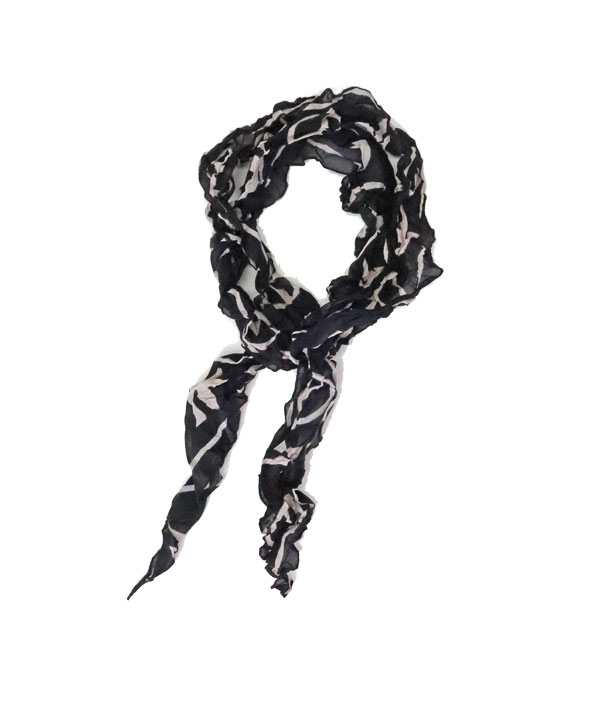 ワッシャーシルク モガスカーフ(LIVE PEACE)PEACE柄が程こされた長めのスカーフ。シルクをウォッシュしております。首元のワンポイントにお使いください。ワンサイズ展開長さ:175㎝