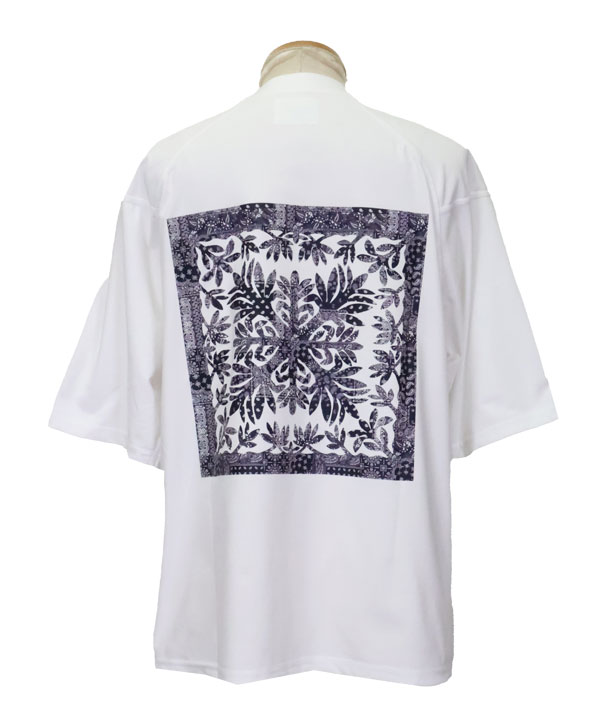 フロント胸中心にはSALVAGE PUBLIC Kolepaブランドスタンプロゴのプリント入り。背中には【Poakalani & co】より提供された「TI LEEF」をペイズリー柄にアレンジしたプリントがインパクトある仕上がりとなっています。