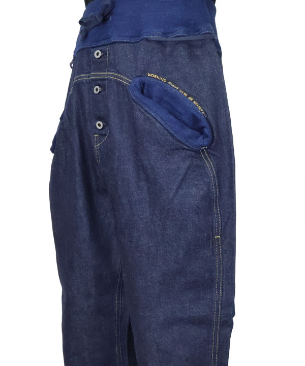 11.5オンスのデニムを使用するサルエルヌーベルパンツパンツ。