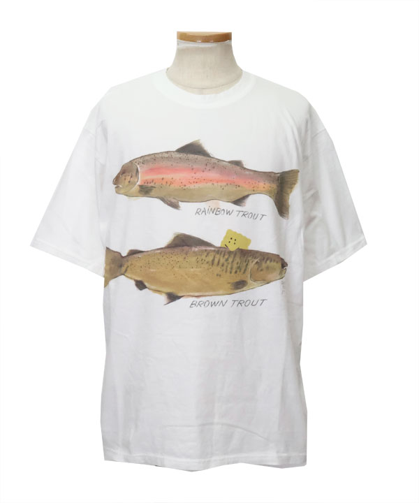 KAPITAL キャピタル 天竺クルーT(トラウト2匹PECKISH RAINBOWY pt)/ ホワイト