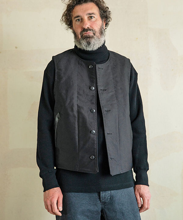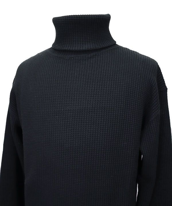 本来ニットであるロイヤルネイビーのサブマリンジャンパーをイメージソースとして20番の太番糸を使ったコットンへビーワッフルで作成したオフタートル。