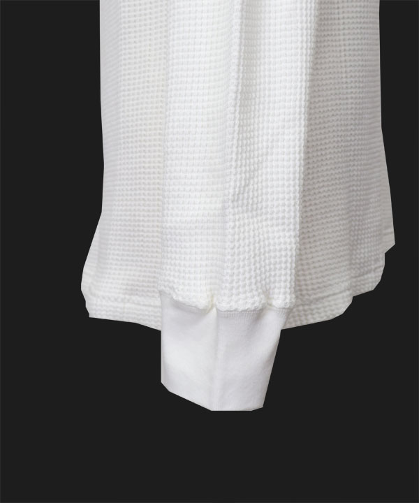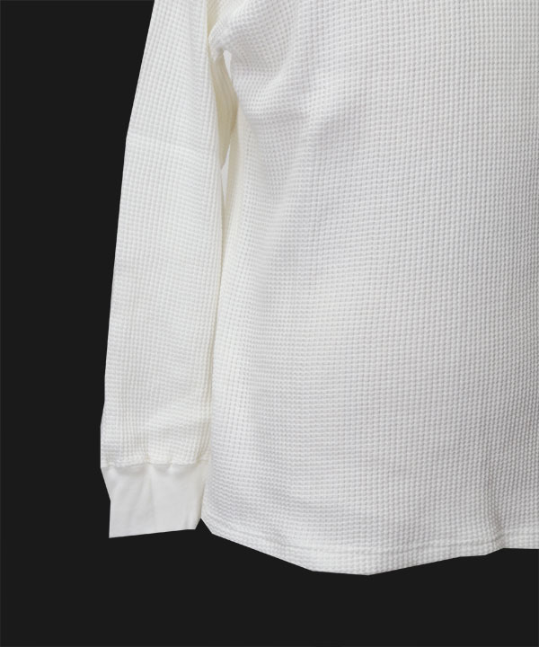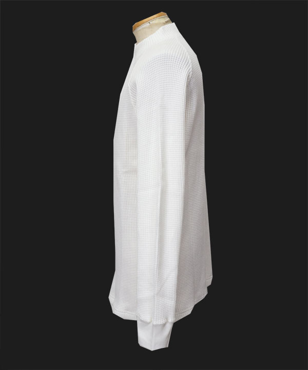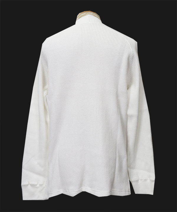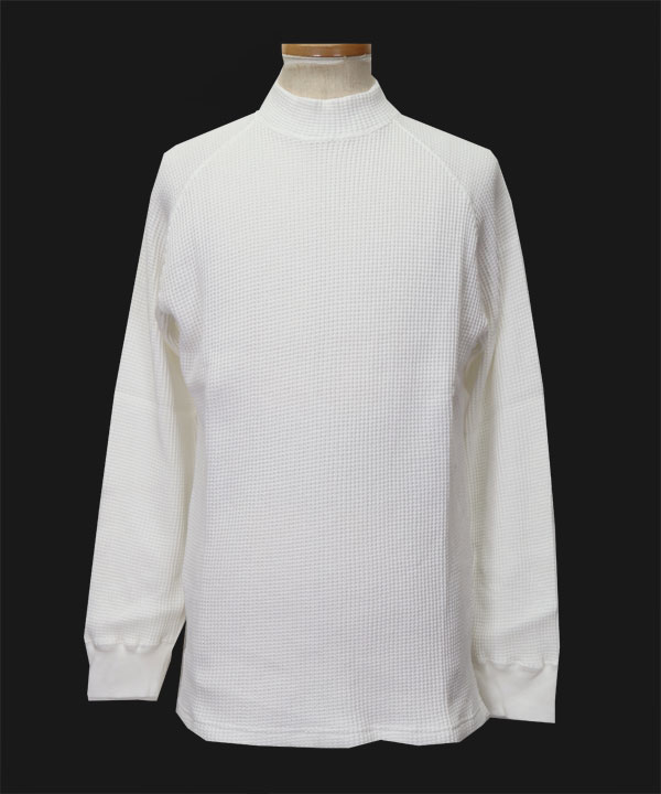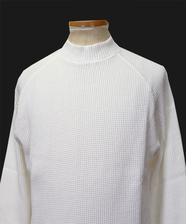 本来ニットであるロイヤルネイビーのサブマリンジャンパーをイメージソースとして20番の太番糸を使ったコットンへビーワッフルで作成したモックネック。