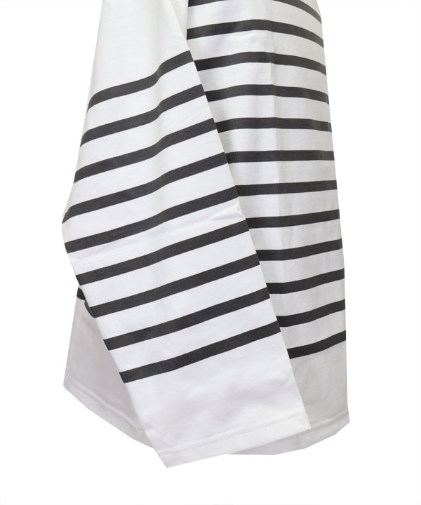 素材には中肉厚のなめらかなコットン天竺を使用する、アームボリュームが特徴のオーバーサイズボックスシルエットとなります。