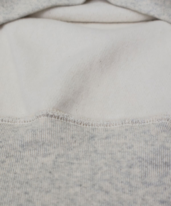 身頃はリバースウィーブ(横使い)にして縦の縮みを軽減し、脇はリブパネルで横の伸縮性を確保しています。