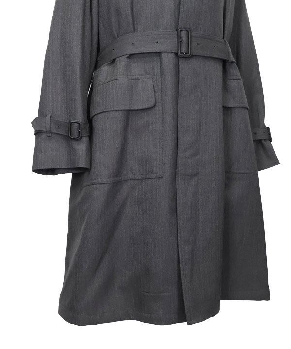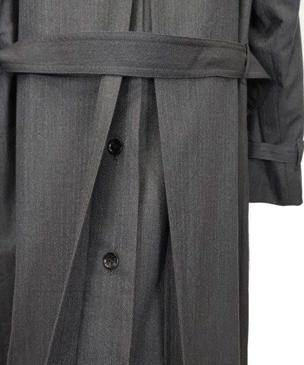 カタチはヴィンテージ・バーバリーの乗馬用コートRIDER(ライダー)をベースにバーバリー社が80年代に制作したデザインコートがイメージソース。背中のヨーク付近まで入ったベンツのボタンを開けると軽快なAラインシルエットとなります。