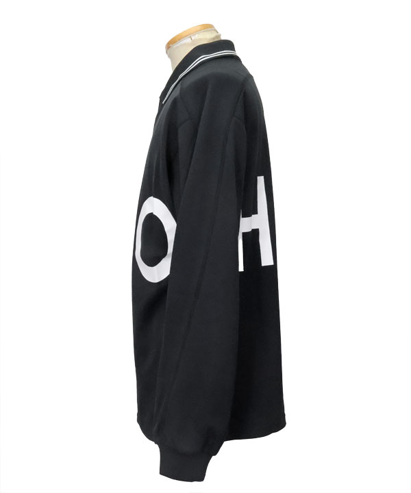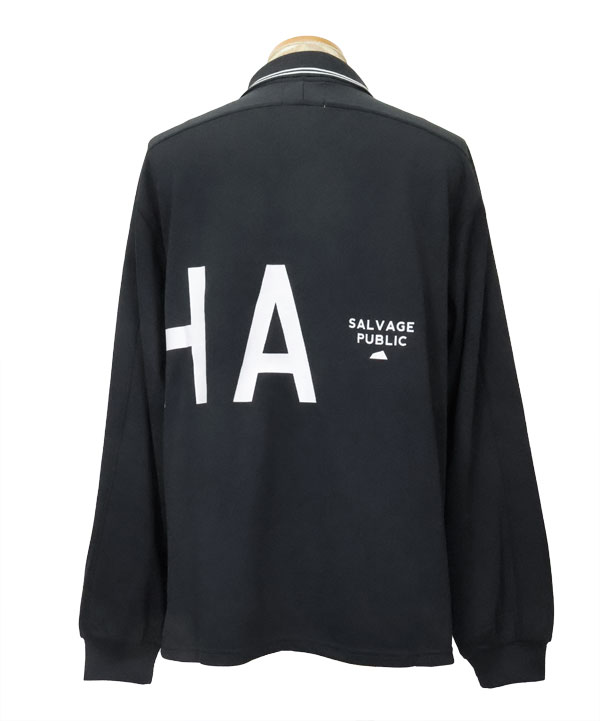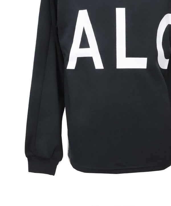フロントからバックに大きく入った ALOHAプリントはインパクトがあり人気のデザイン。そして襟にジャガードで入れられた2本ラインもアクセントになっています。