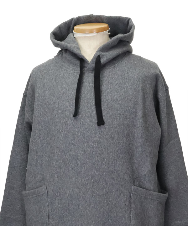 カーゴポケットフーディ(Root)裏ループにコーティングを施し、裏起毛加工に更に膨らみを持たせた裏毛を使用したパーカー。身頃はリバースウィーブにて身生地を横に使用し着丈の縮みを抑える仕様となっています。また、脇ハギを跨ぐ形で叩いた 腰のパッチポケットが独特のカーゴポケットフーディー。ご活躍いただけますよ。カラー:メランジチャコール