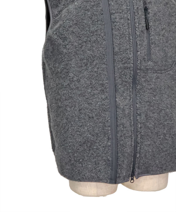 フロントに並列して配置した2本のZIPが特徴的なスタンドネックベストです。