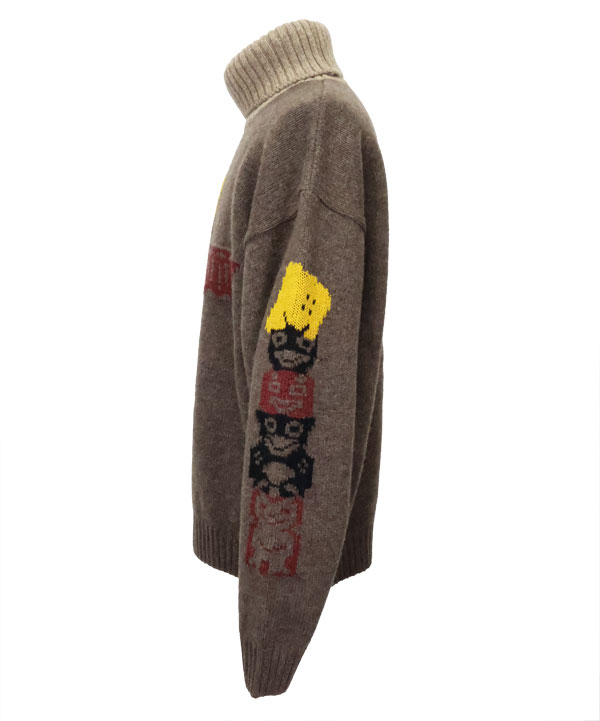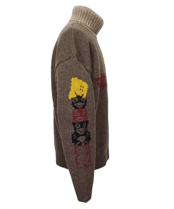5Gウール PECKISHトーテムポール ハイネックセーターゆったりしたサイズ感のタートルセーターです。フロントと袖には、クッキーになったRAINBOWYとトーテムポールをデザイン。ざっくり着ていただけるおすすめの一枚です。カラー:ブラウン3サイズ展開のみアイテム